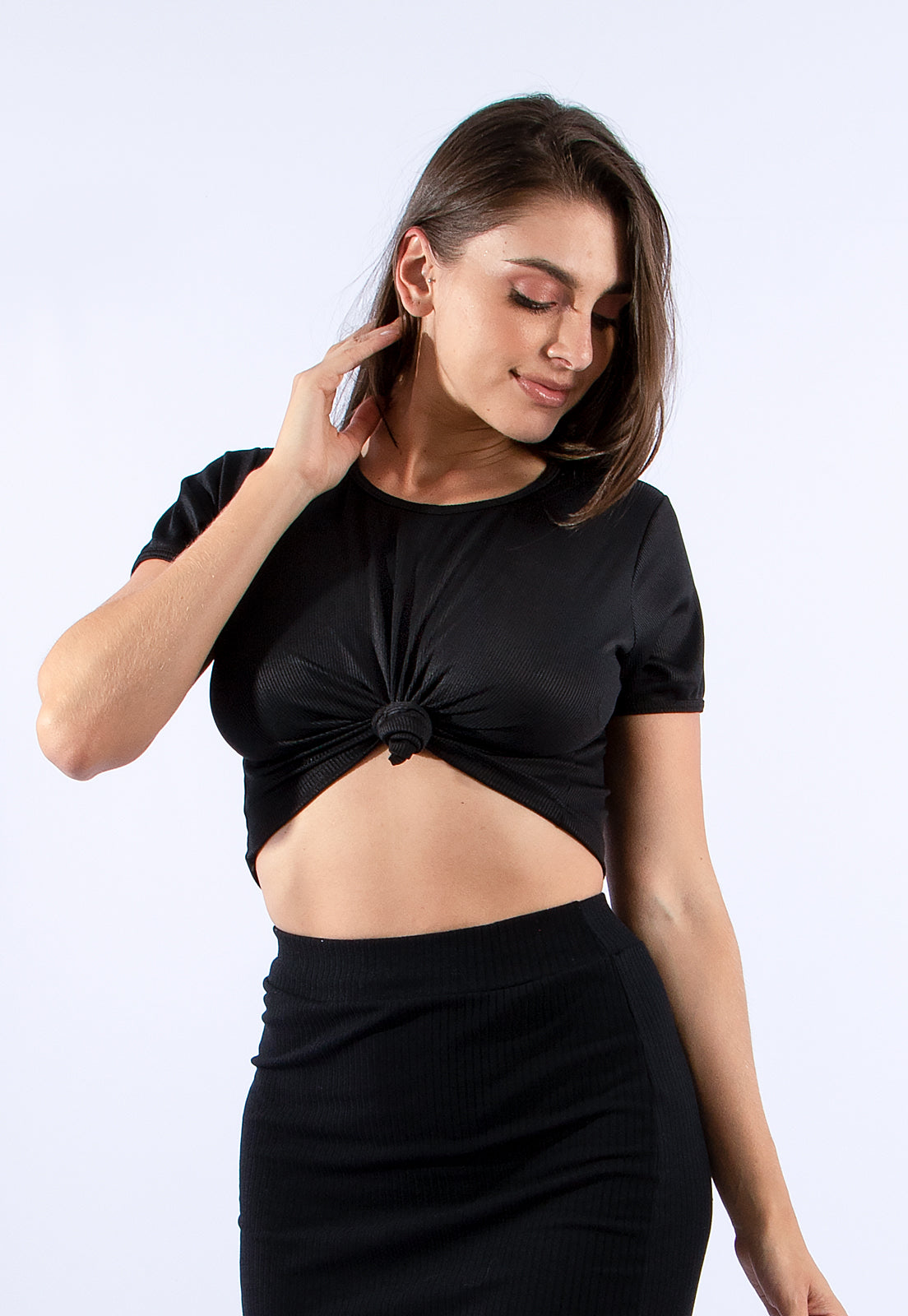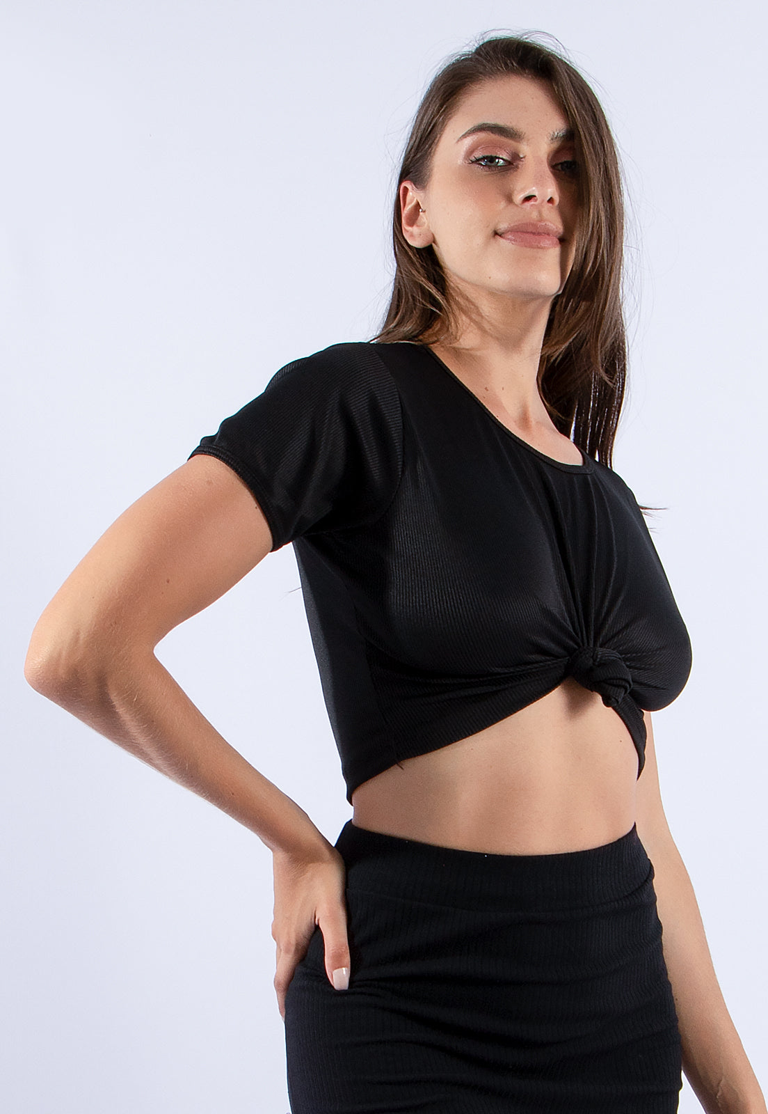 A blusa cropped perfeita para quem ama unir estilo, conforto e tendência! Com design moderno e detalhe de nózinho frontal, ela valoriza a silhueta e traz um toque fashion para qualquer look. Ideal para compor produções casuais ou mais estilosas, combina facilmente com jeans, shorts, saias ou calças de cintura alta.