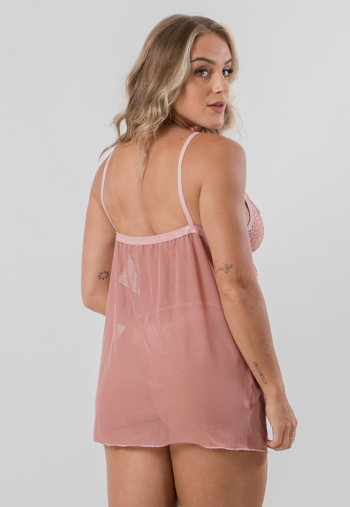 Sinta a delicadeza do tule suavemente acariciando sua pele enquanto você se prepara para uma noite de pura indulgência. O detalhe rendado adiciona um charme misterioso, criando um equilíbrio perfeito entre ocultar e revelar, tornando cada momento ainda mais excitante.